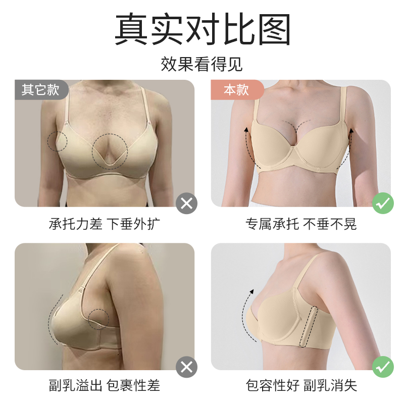 Large breasts for small breasts underwear for women Summer thin section Poly Woo Back breast anti-drooping glossy glossy glossy glossy big-size movement bra-Taobao