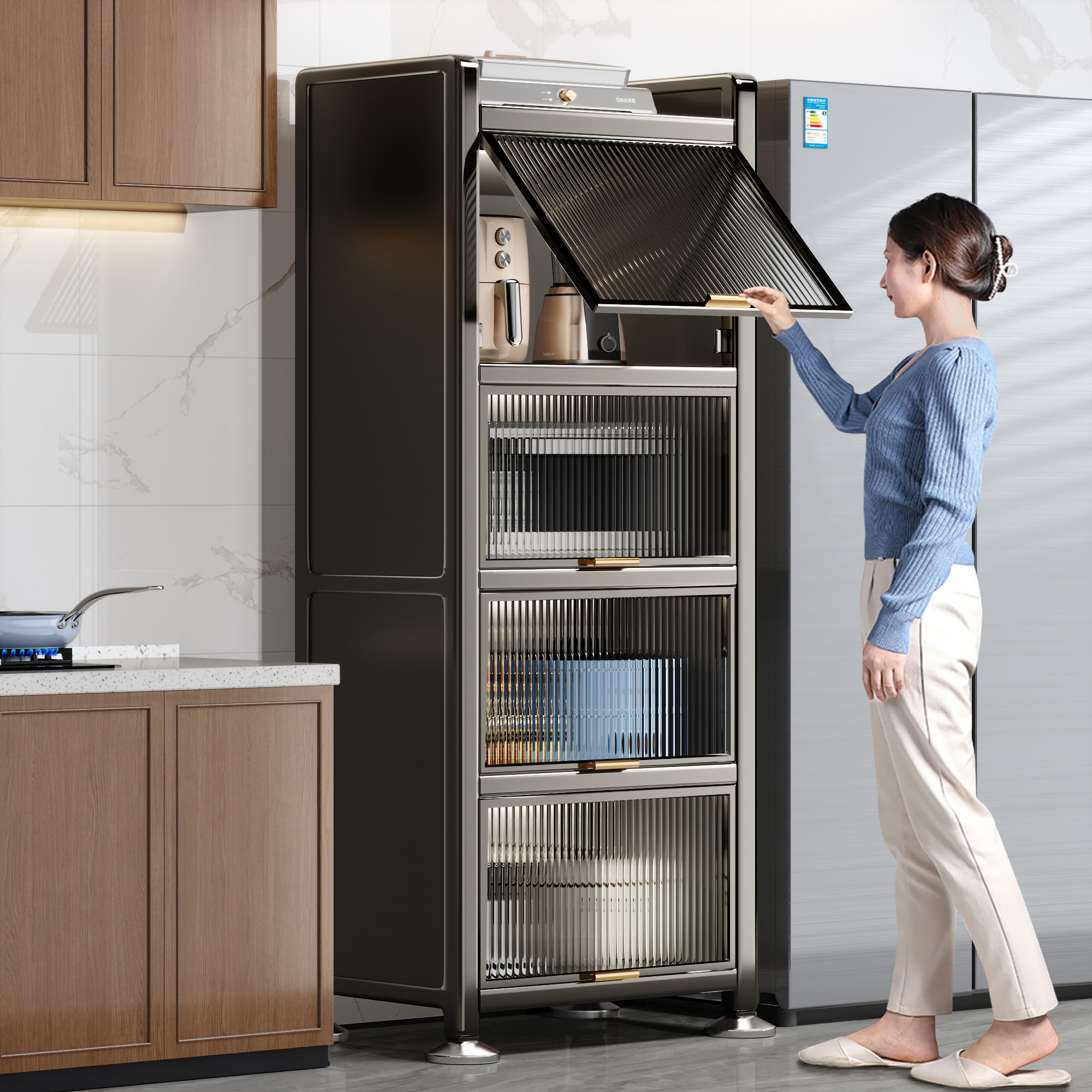 3 generation (carbon steel back board ⭐6 face anti-dust) delivery door light lavish (4 floors-face width 40cm) Carbon steel back plate Gard with high light lavish style (4 layers-face width 45cm) Carbon steel back