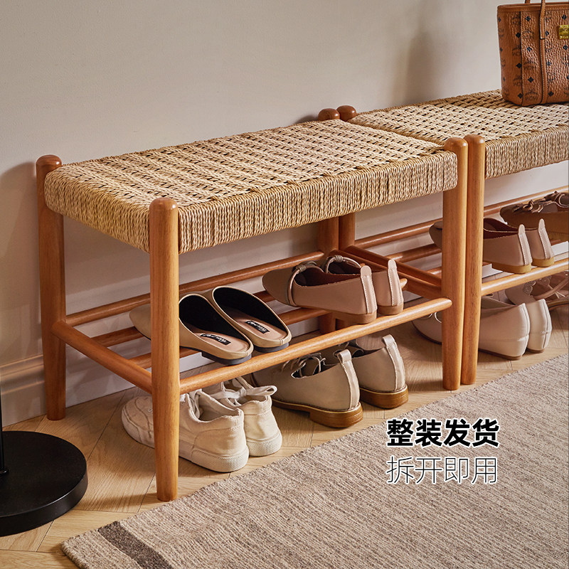 Home Comfort Full Wood Changing Shoes Stool Cherry Wood Color in the door Shoes Stool Short Stool Doorway Stool Xuanguan Shoe Rack Downbench-Taobao