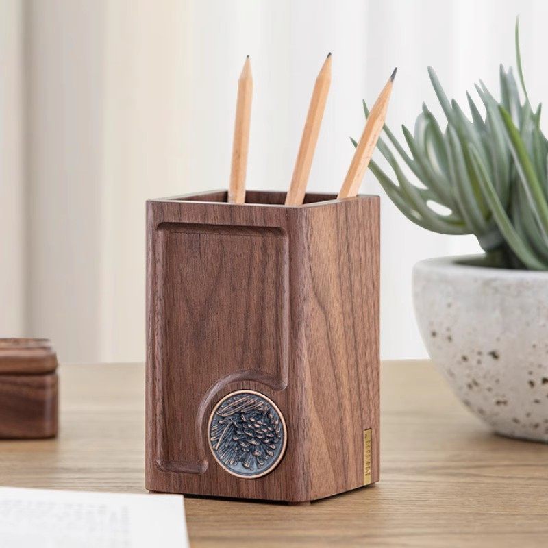 Solid wood pen holder multifunction office desktop containing box retro pen large capacity pen holder for delivery student gift-Taobao