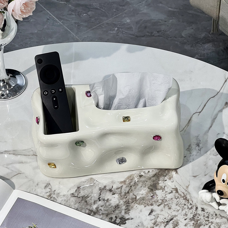 Paper Towel Box Upscale Light Lavish Living Room Home Ceramic Cramps Tea Table Multifunction Remote Control Containing Napkins paper Box-Taobao