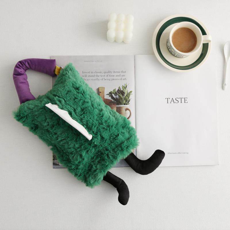 Plush soft cute living room tissue set coffee table drawer box wall-mounted high-end tissue bag car hanging tissue box