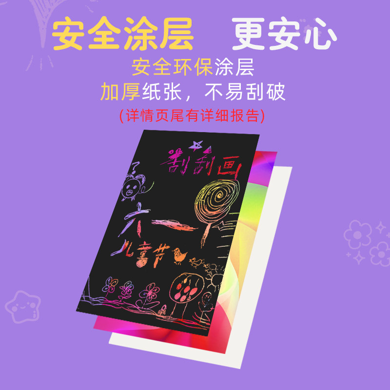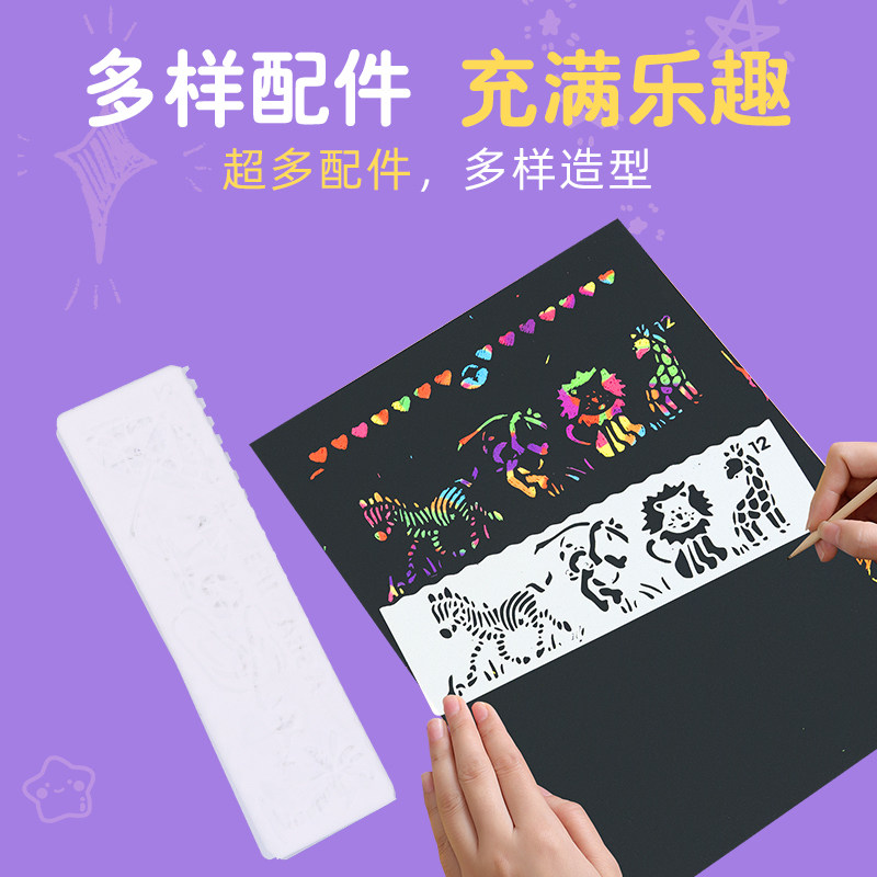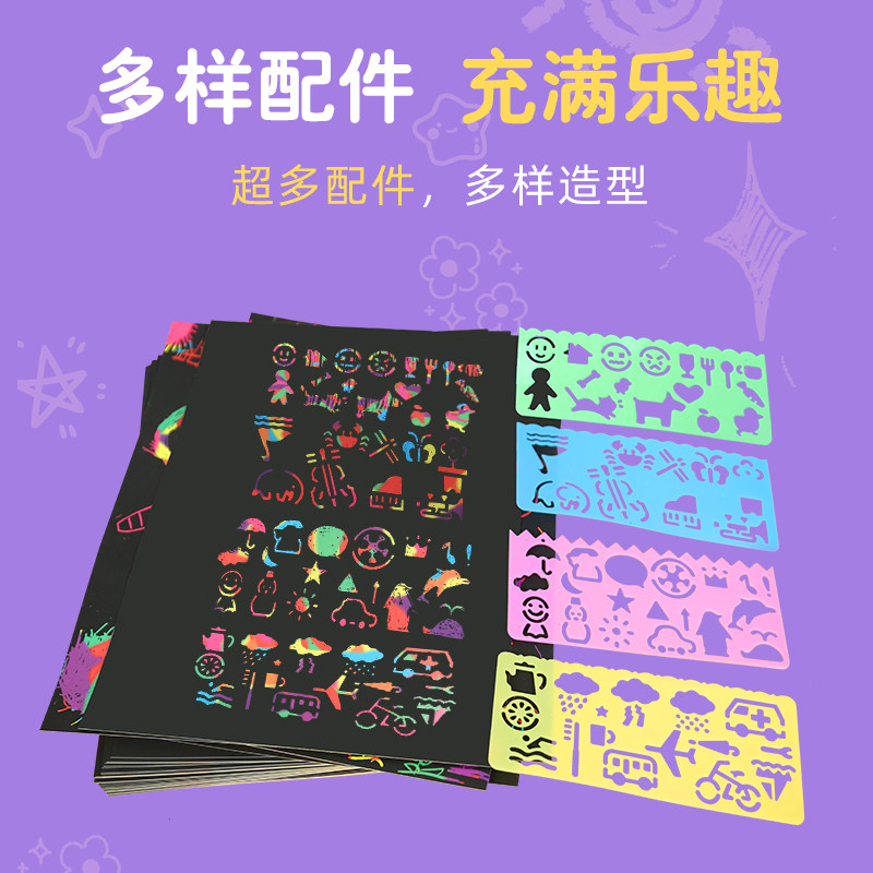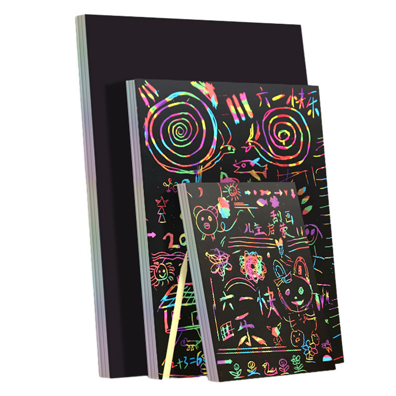 100 pieces of scraping paper set 16K student art creative painting scraping wax paper children's black drawing paper 8K colorful scratching book A4 color graffiti paper scratching kindergarten handmade sand painting paper