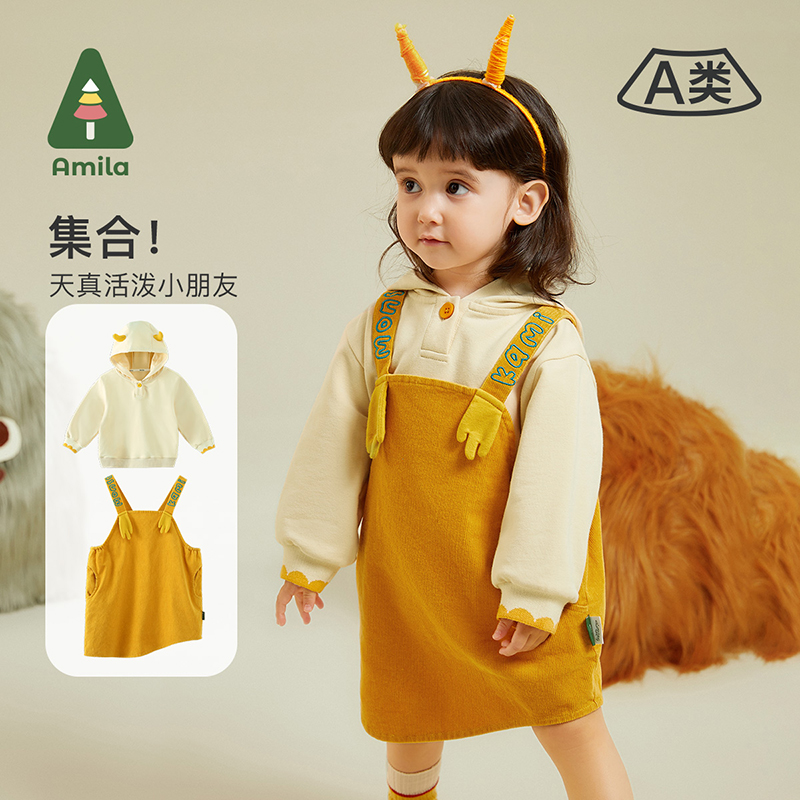 Amila Children's Dress Dress Suit 2023 Autumn Clothing New Girl Baby Acrobae Braces Skirt two sets-Taobao