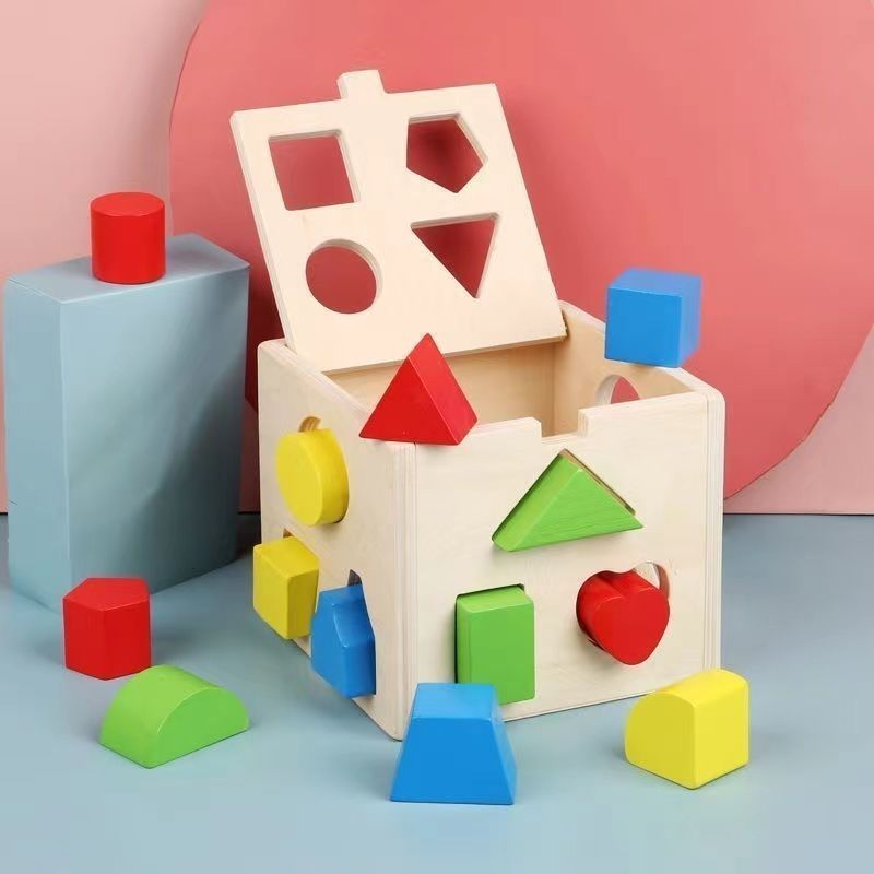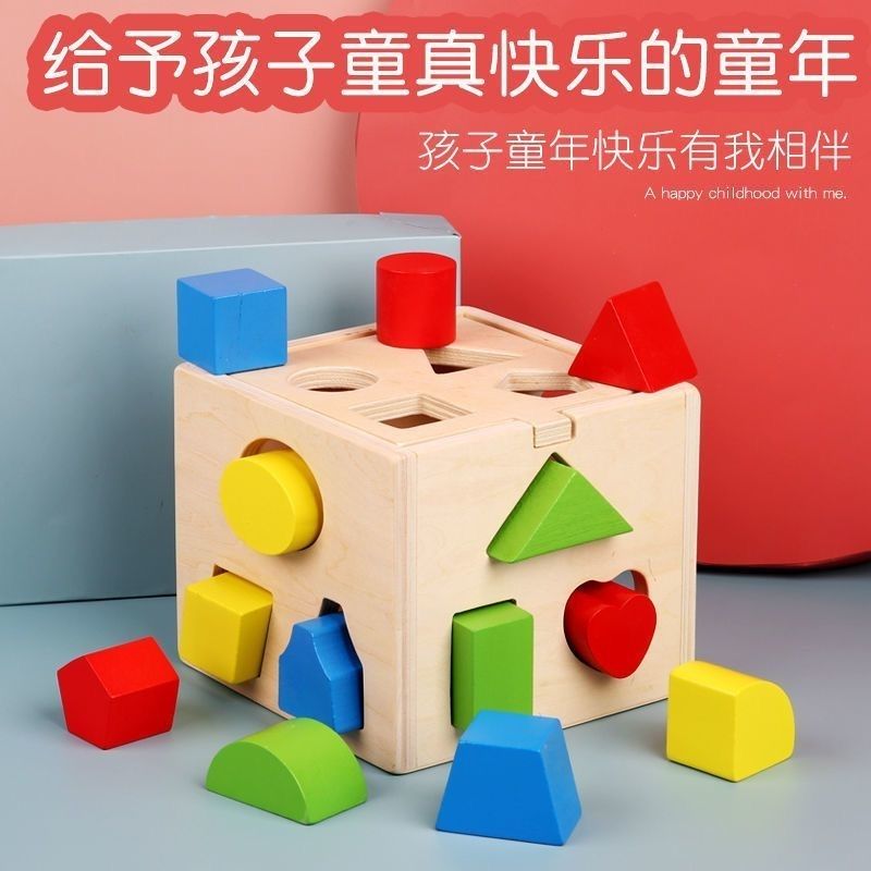 Geometric Shapes Pairing Building Blocks thirteen Holes Intellectual Boxes Children Puzzle Building Blocks Toys Kindergarten Preschool Teaching Aids-Taobao