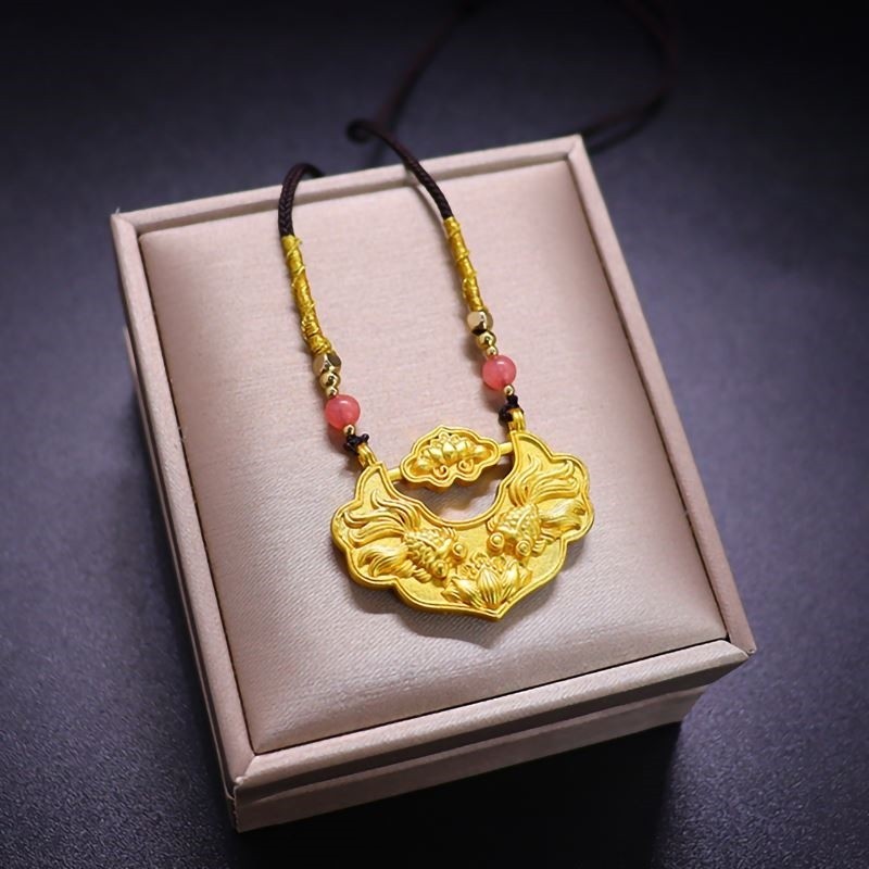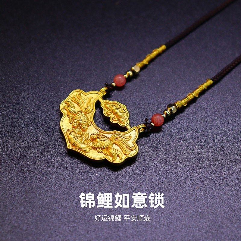 Item ring choreography adult gold necklace handwoven pendant gold carp Ruyi locks Ping An lock long life lock Sargin woman-Taobao