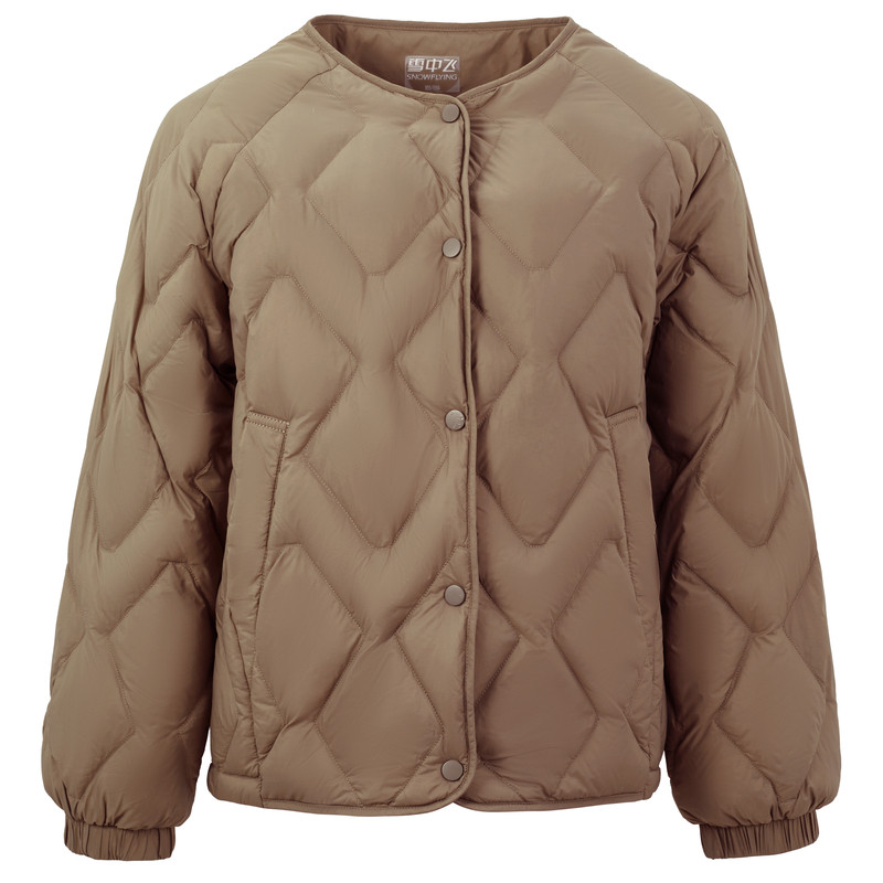 Snow medium flying 2023 autumn and winter new Korean version women's style V collar 100 lap large rhomboid light thin minimalist fashion down jacket-Taobao