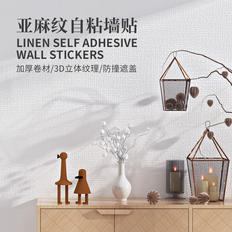 Linen wallpaper Self-adhesive waterproof moisture-proof wall sticker bedroom rental room Wall wallpaper Home Self-sticking out of grey wall Special-Taobao
