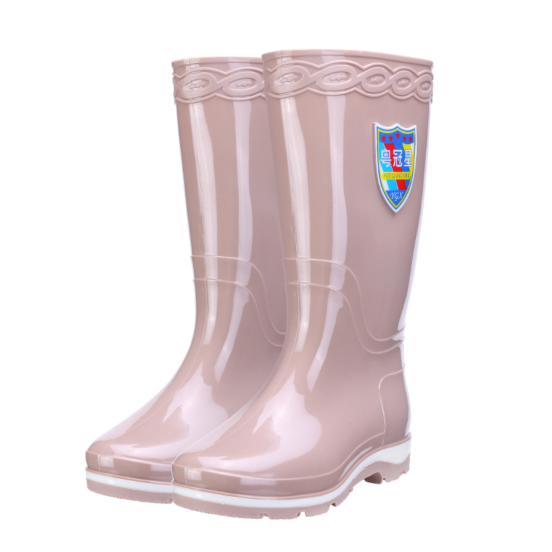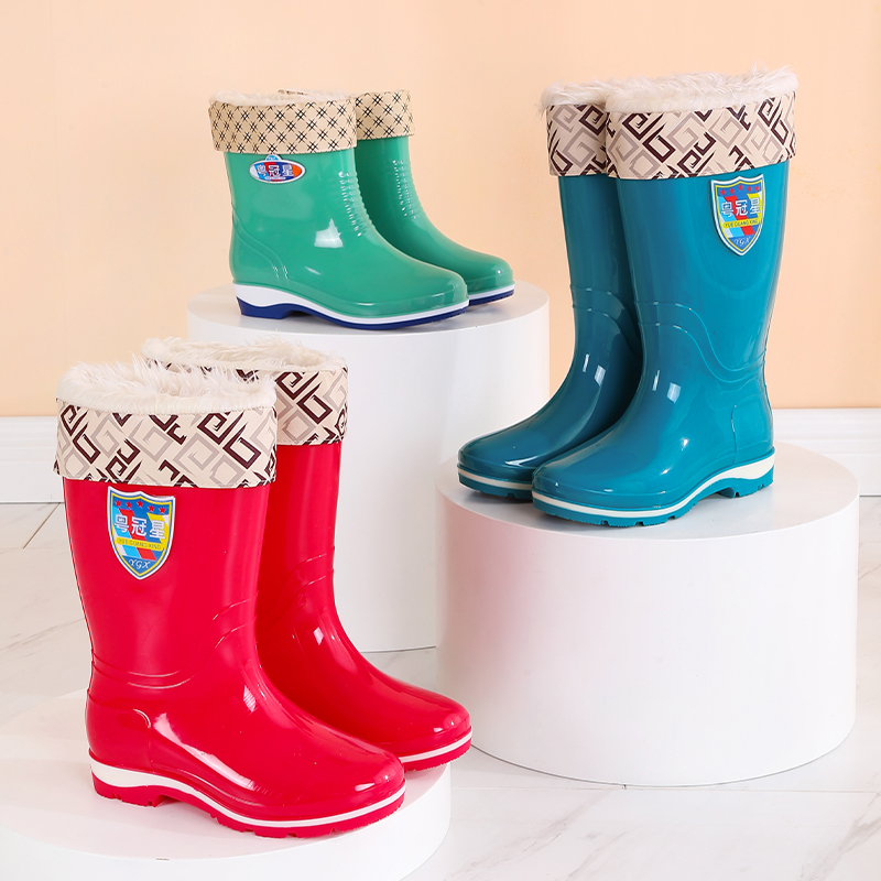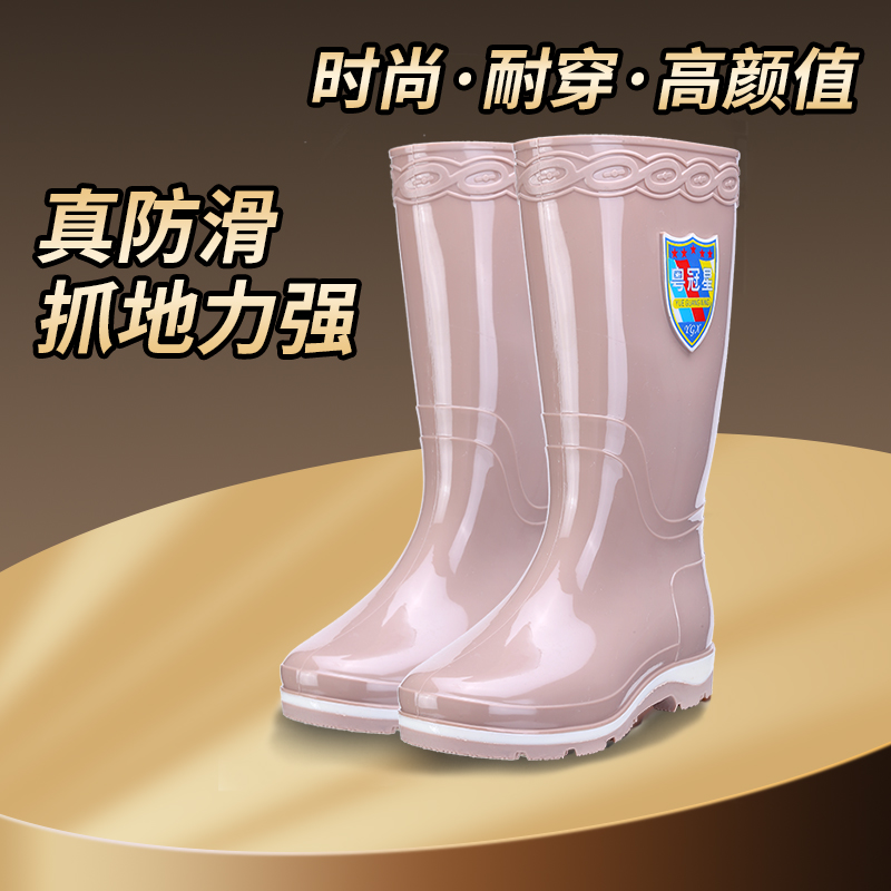 High Cylinder Rain Shoes Lady Fashion Exterior Wearing Non-slip Waterproof Thick Bottom Rubber Shoes Catch Sea Adult Long with velvety soft bottom Rain boot-Taobao