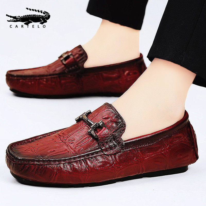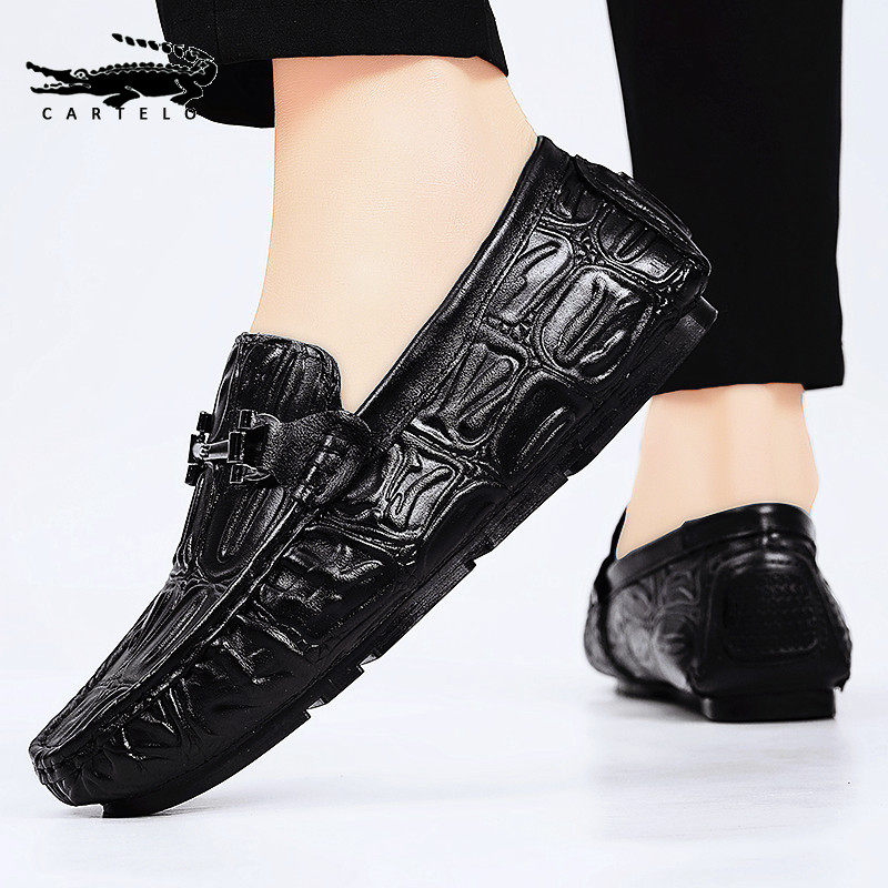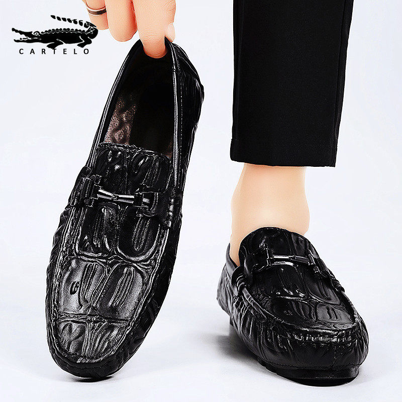Crocodile bean-bean shoes Men's shoes Winter 2023 new dermis Foot Pedaling Sloth Shoes Men Casual Leather Shoes Man-Taobao