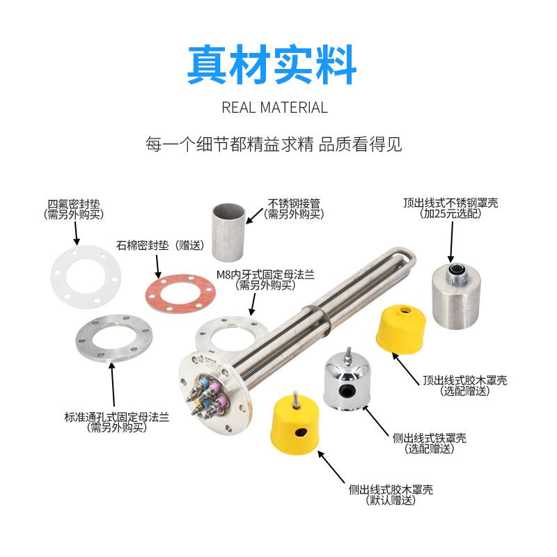 115 flange heating tube heat conduction oil heating tube water tank electric heating tube reaction kettle heating tube 380V 6 9 12KW
