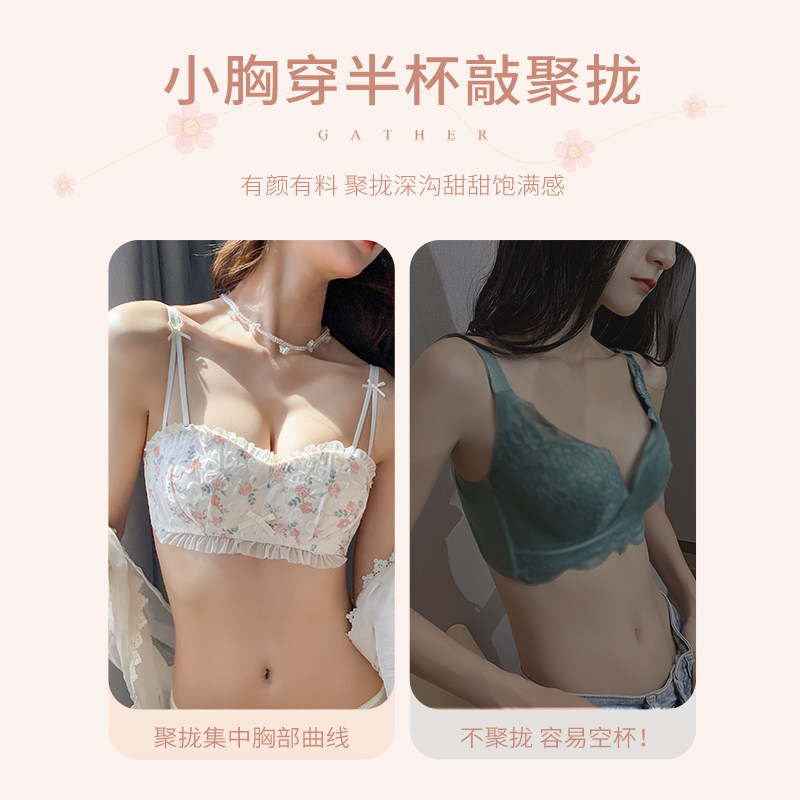 Teenage girl underwear gathers small breasts for autumn and winter without steel ring anti-sagging multi-love cat half a cup sexy lady bra hood suit-Taobao