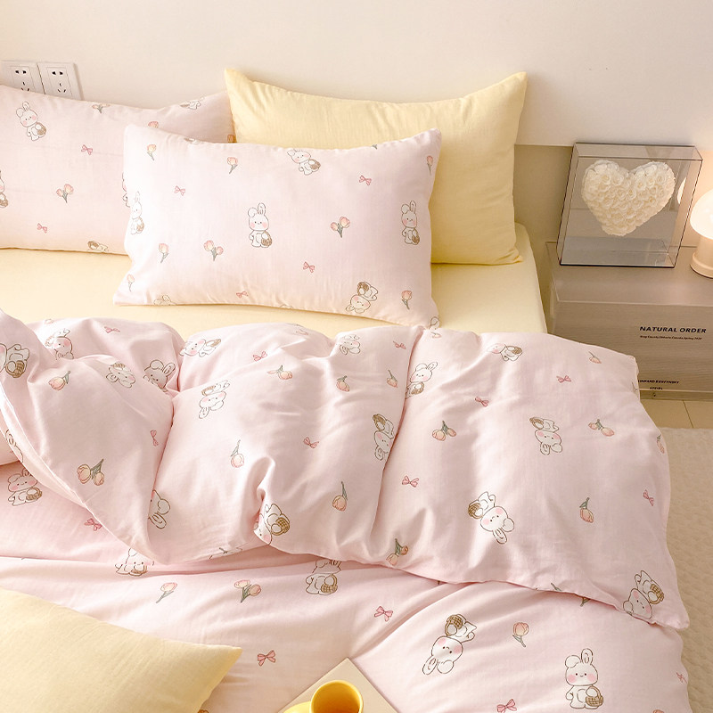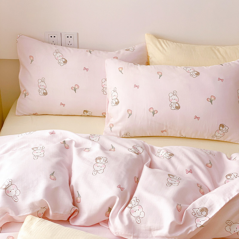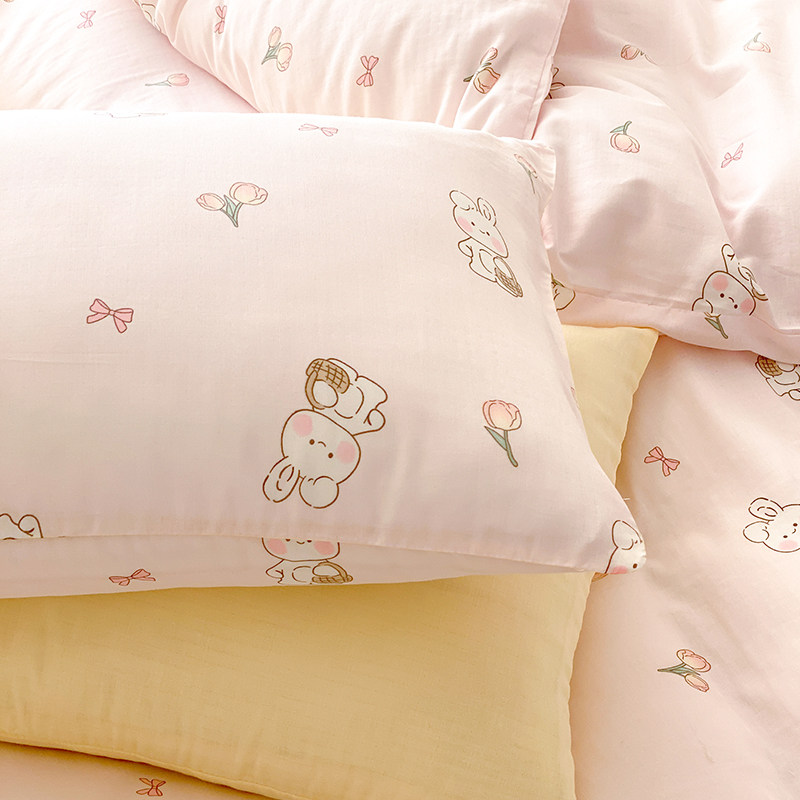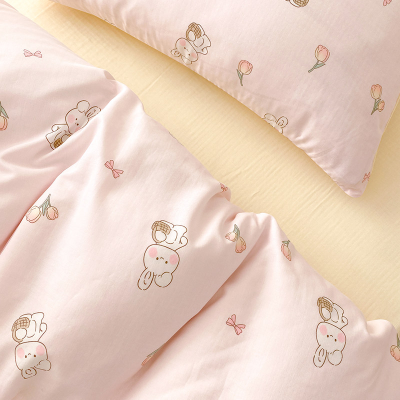 Rolls Ear Rabbit girl A class of pure cotton double layer yarn Quilt Cover Single baby Children's bedsheet 1 2m bed cover set-Taobao