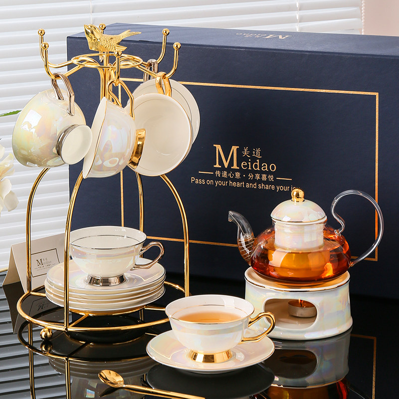 Meidao Golden Galaxy European-style flower teapot candle heating exquisite bone china afternoon tea tea set light luxury high-end