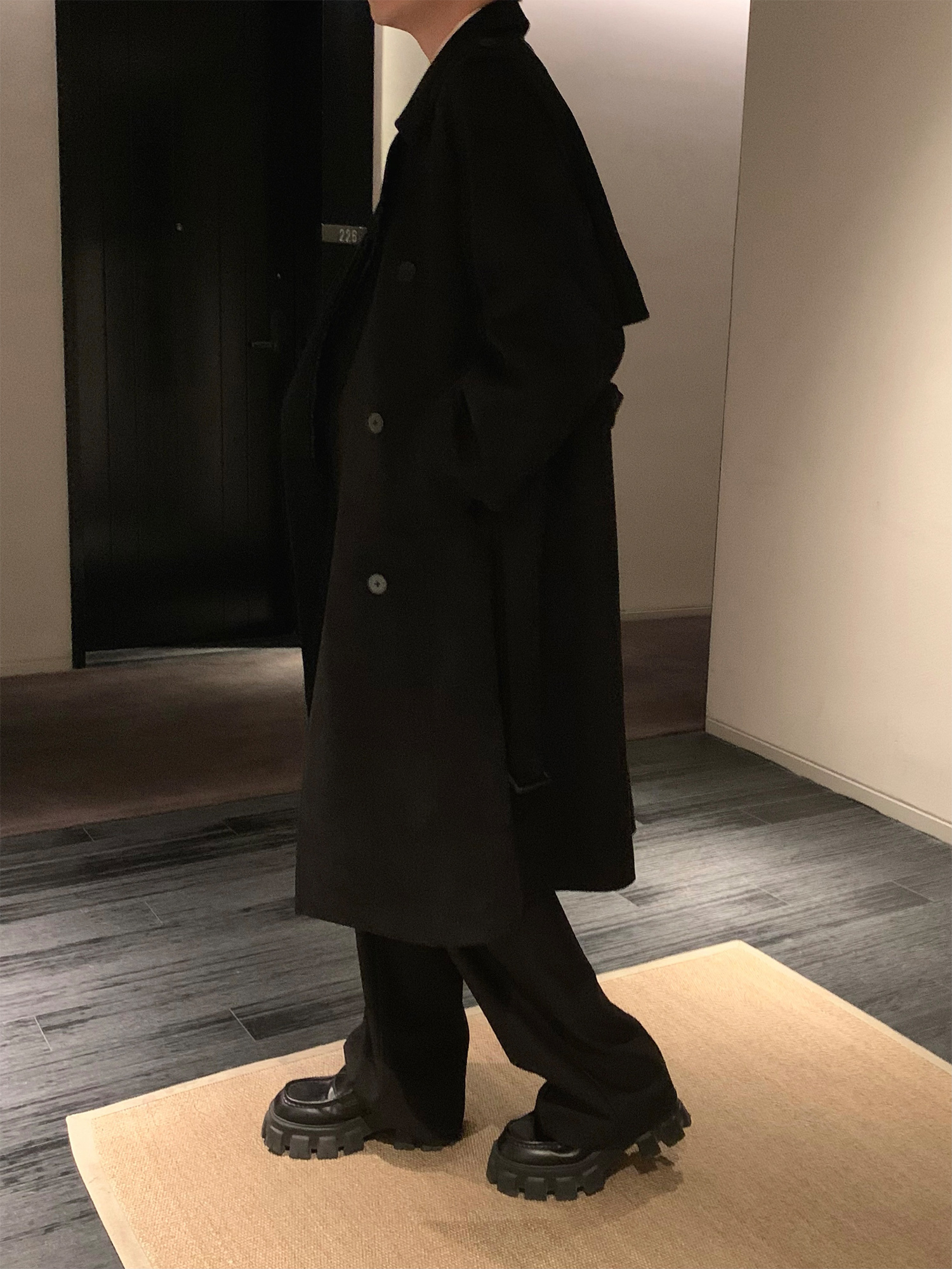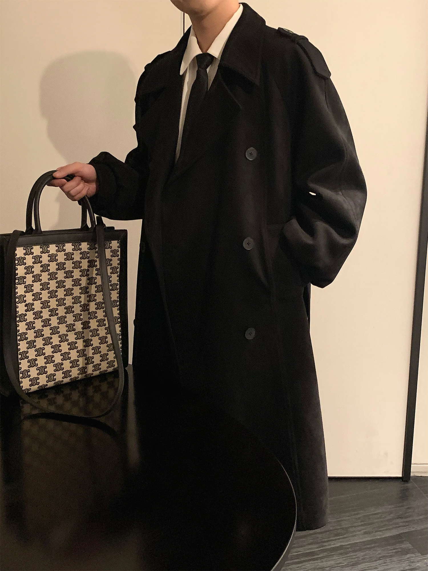 Atea with Agu Black suede Wind clothes Men's medium long Tide Cards Early Autumn Advanced Senses Casual Loose Coat-Taobao