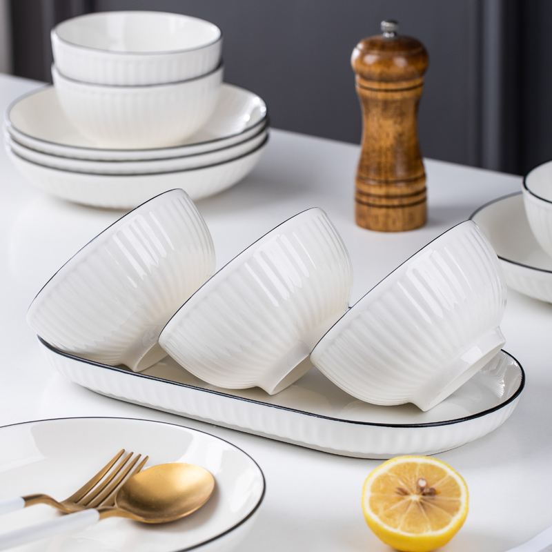 Nordic Bowls Dish Suit Home 2023 New Ceramic Cutlery Suit Mesh Red Plate Bowl Advanced Sensation Bowl Dish Bowl chopsticks-Taobao