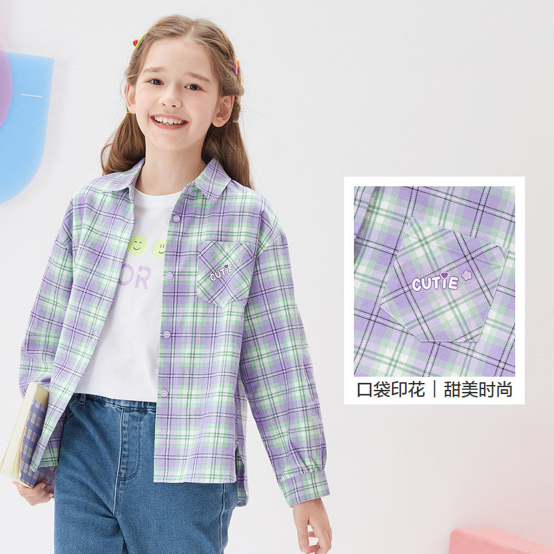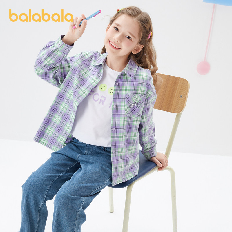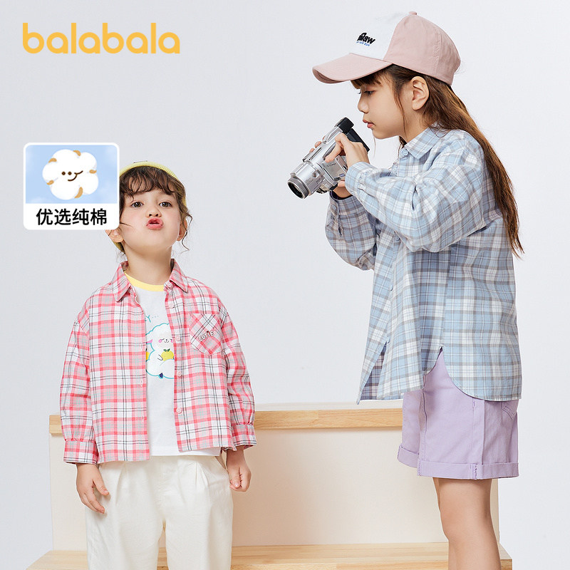 Bala Bala Girl Child Long Sleeve Shirt Autumn Clothing Baby Big Boy Plaid Printed Fashion Sweet Meme Tide Lining-Taobao