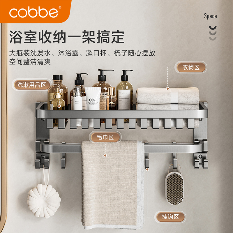 Cabernet Basket Hair Towel Rack Sub-Perforated Bathroom Shelve Integrated Toilet Gun Grey Space Aluminum Pendant Suit-Taobao