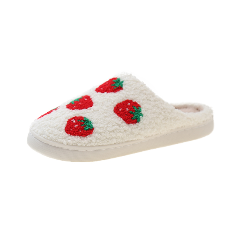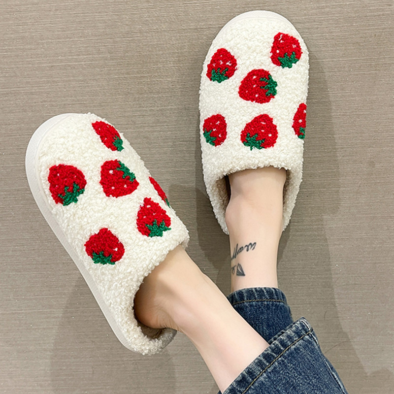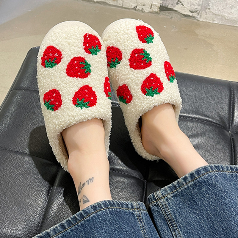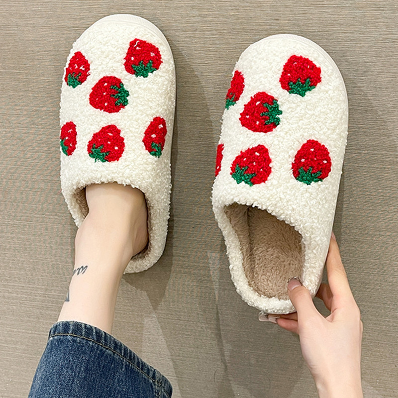 Red embroidered strawberry cotton slippers pink embroidered honey peach cotton slippers red embroidered cherry cotton slippers yellow embroidered pineapple cotton slippers