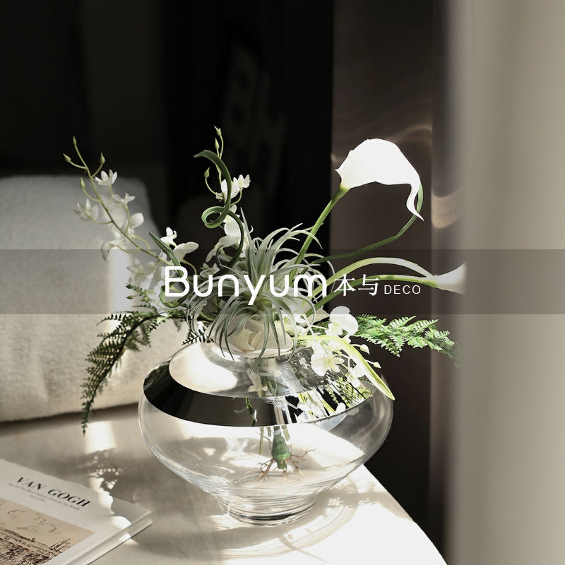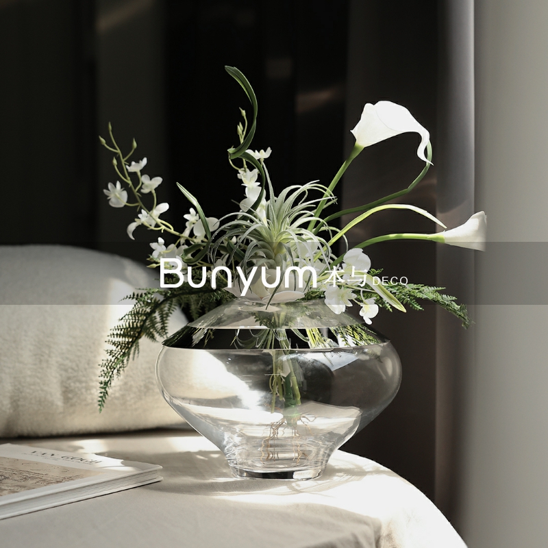Nordic Minimalist Flower Arrangement Transparent Glass Stainless Steel Ring Vase Swing room sample room for sale with soft decorations-Taobao