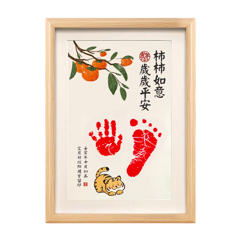 Tiger baby hand foot print to mark 100 days of arrest week full moon ceremony photo frame 1-year-old imprint with printed props-Taobao