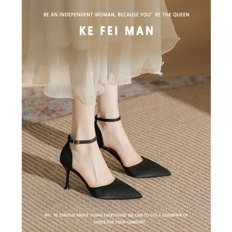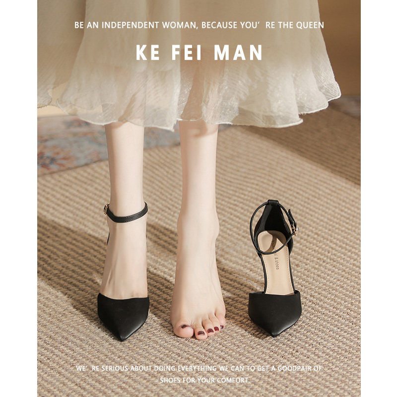 (Cofiman) lined up with high heels female summer new temperament thin heel sandals Daily commute black-Taobao