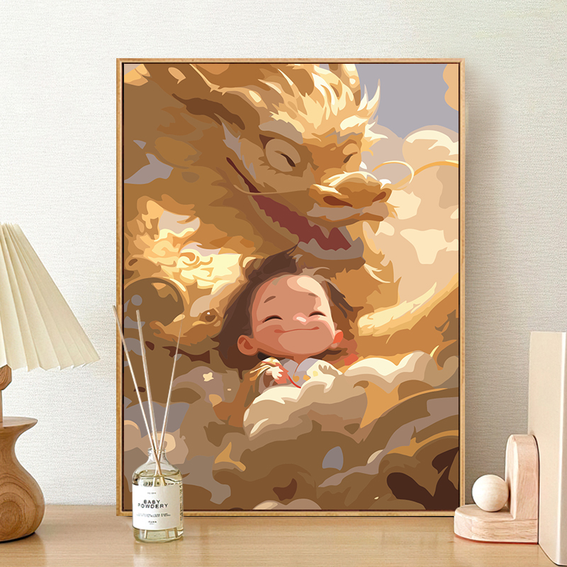 Cute China Wind Golden Dragon Baby Diy Digital Oil Painting Oil Color Filling color Artisanal Hand-painted Advanced Feel Gift-Taobao