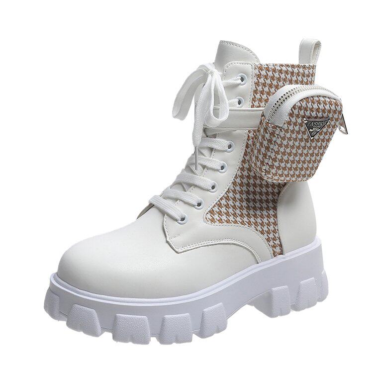 New Botas Women Motorcycle Ankle Boots Wedges Female Lace Up
