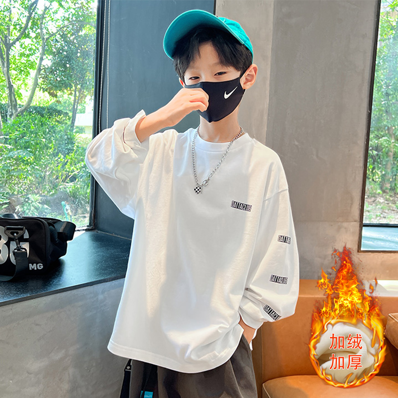 Boy long sleeve t-shirt spring autumn winter style big boy boy winter clothing slats bottom-shirt plus suede thick children pure cotton inner lap blouses-Taobao