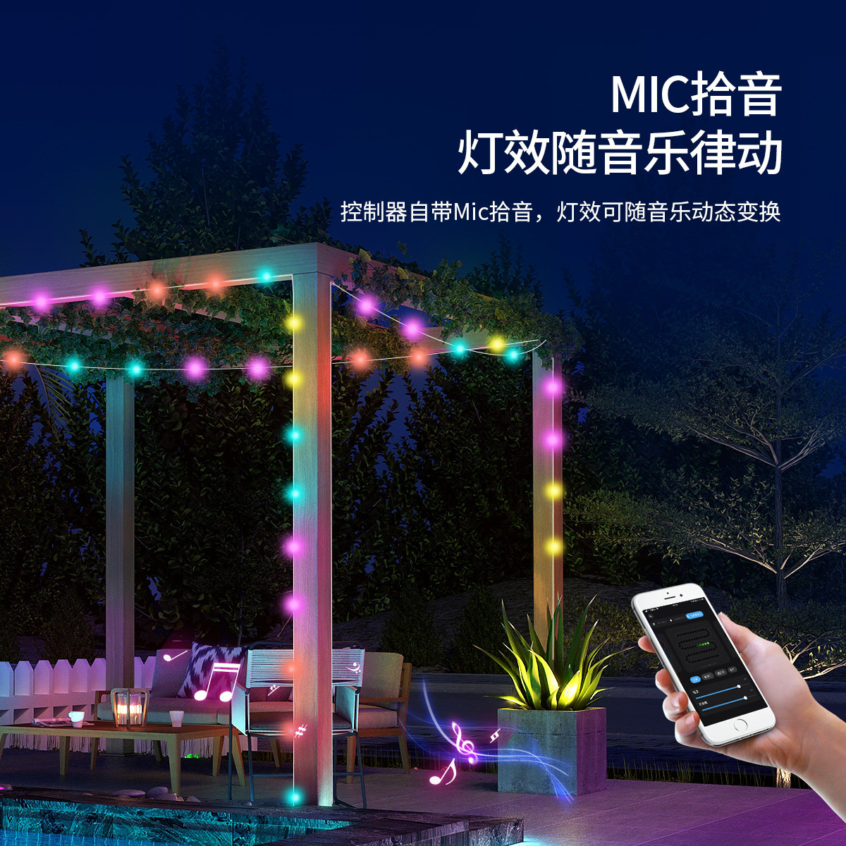 Acoustic control string lamp Fancy Color Light Weight Home Outdoor Waterproof Atmosphere Light With Flowing Water Running Horse Camping Colorful Lights String-Taobao