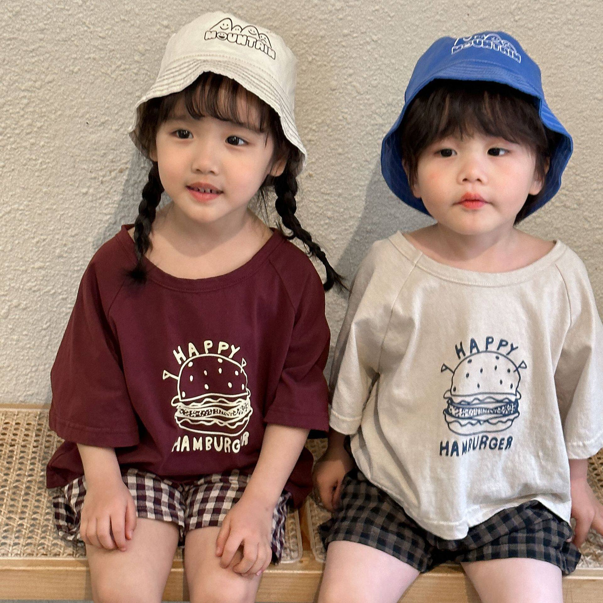 Children's T-shirt Summer clothing suit Men and women 2023 new Summer Leisure pure cotton checkered baby short sleeves Two sets-Taobao