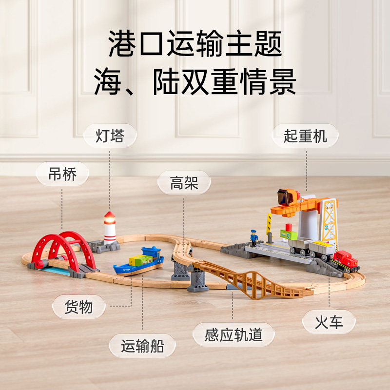 Hape Train Rail Port Transport Kit Children Baby Early Education Puzzle Wooden Toy Male Girl Model 3-Taobao