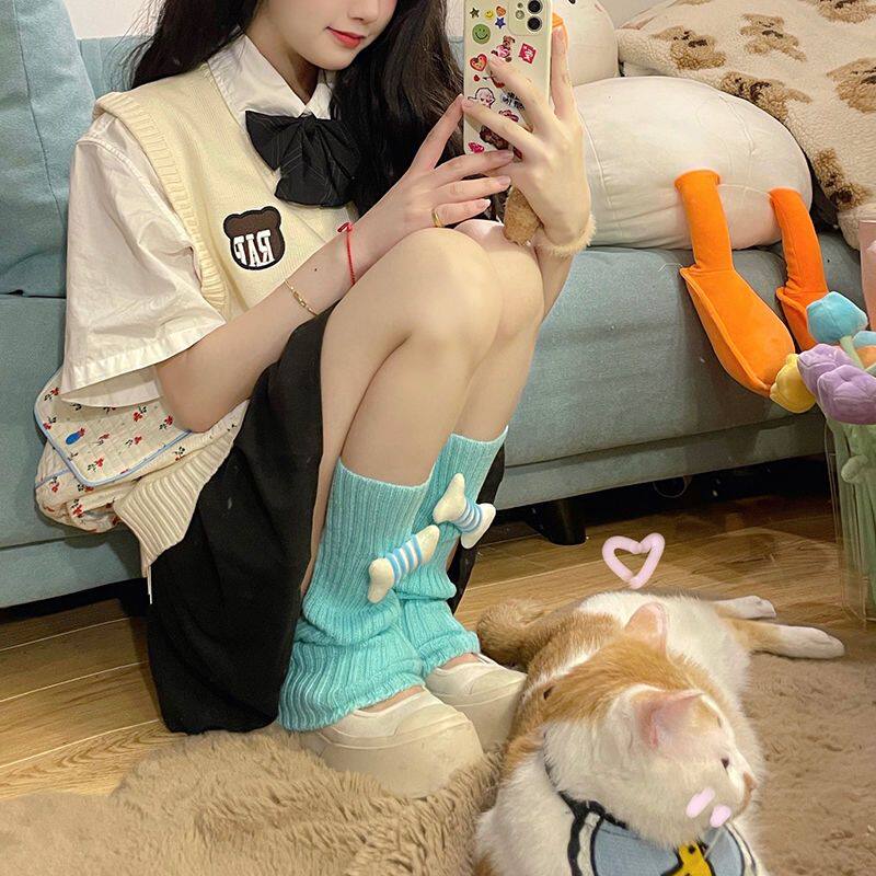 Dopamine cute little bones leg socks candy color series y2k 100 hitch cultural leg heaps pile socks women candy color-Taobao