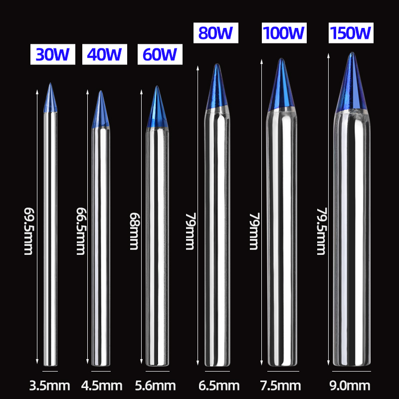 30W branded iron head (pointed blue tip) 1 40W branded iron head (pointed blue tip) 1 60W branded iron head (pointed blue tip) 1 80W branded iron head (pointed blue tip) 1 100W branded iron head (