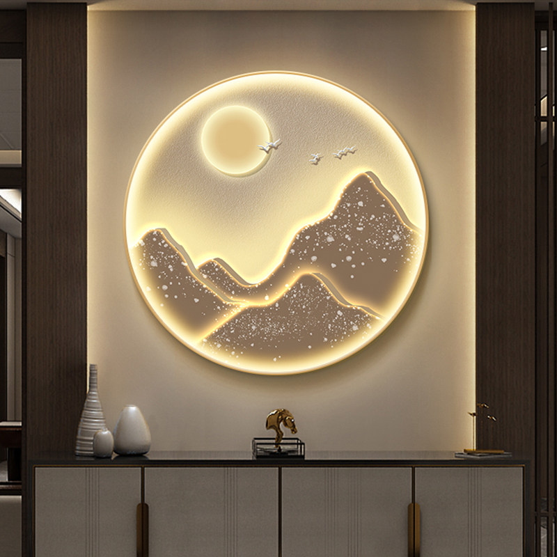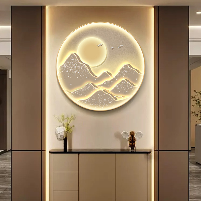 Zhizhao Jinshan round Xuanguan decoration painting into the family hanging painting landscape painting light extravagant corridor gangway mural Led lamp painting-Taobao