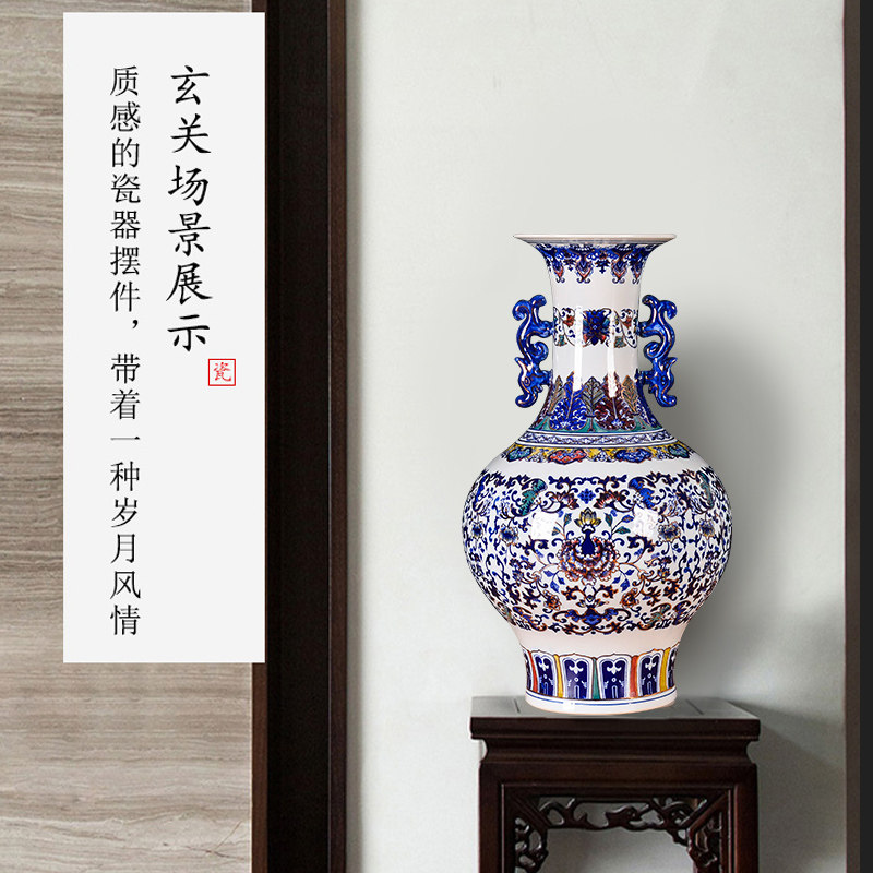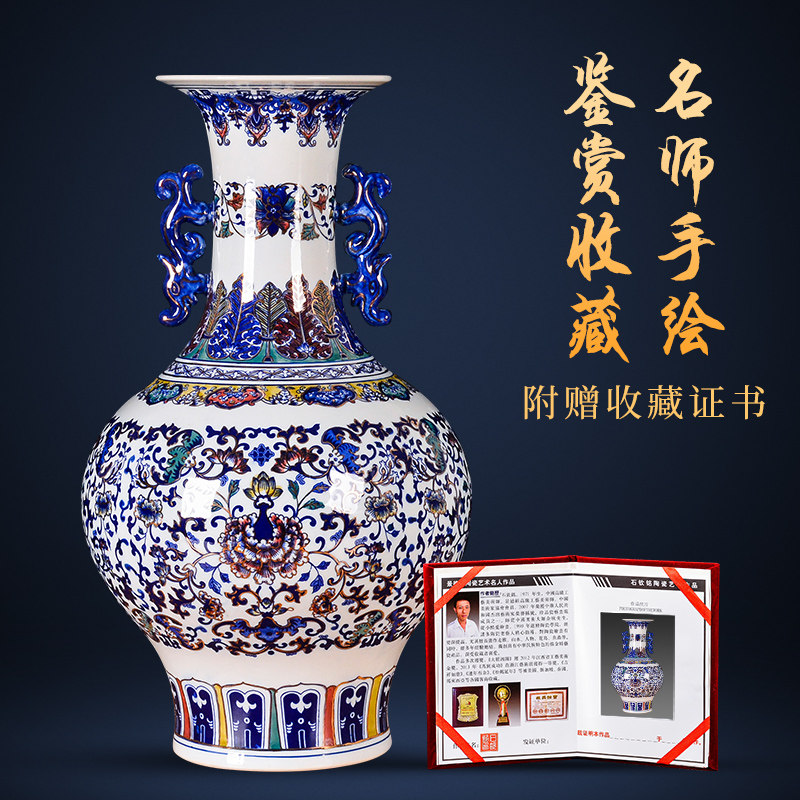Jingdezhen Ceramic sketching hand painted green flower Colorful Tangle Branches Lotus Bottle Imitation Ancient Living Room Company Home Decoration Pendulum-Taobao