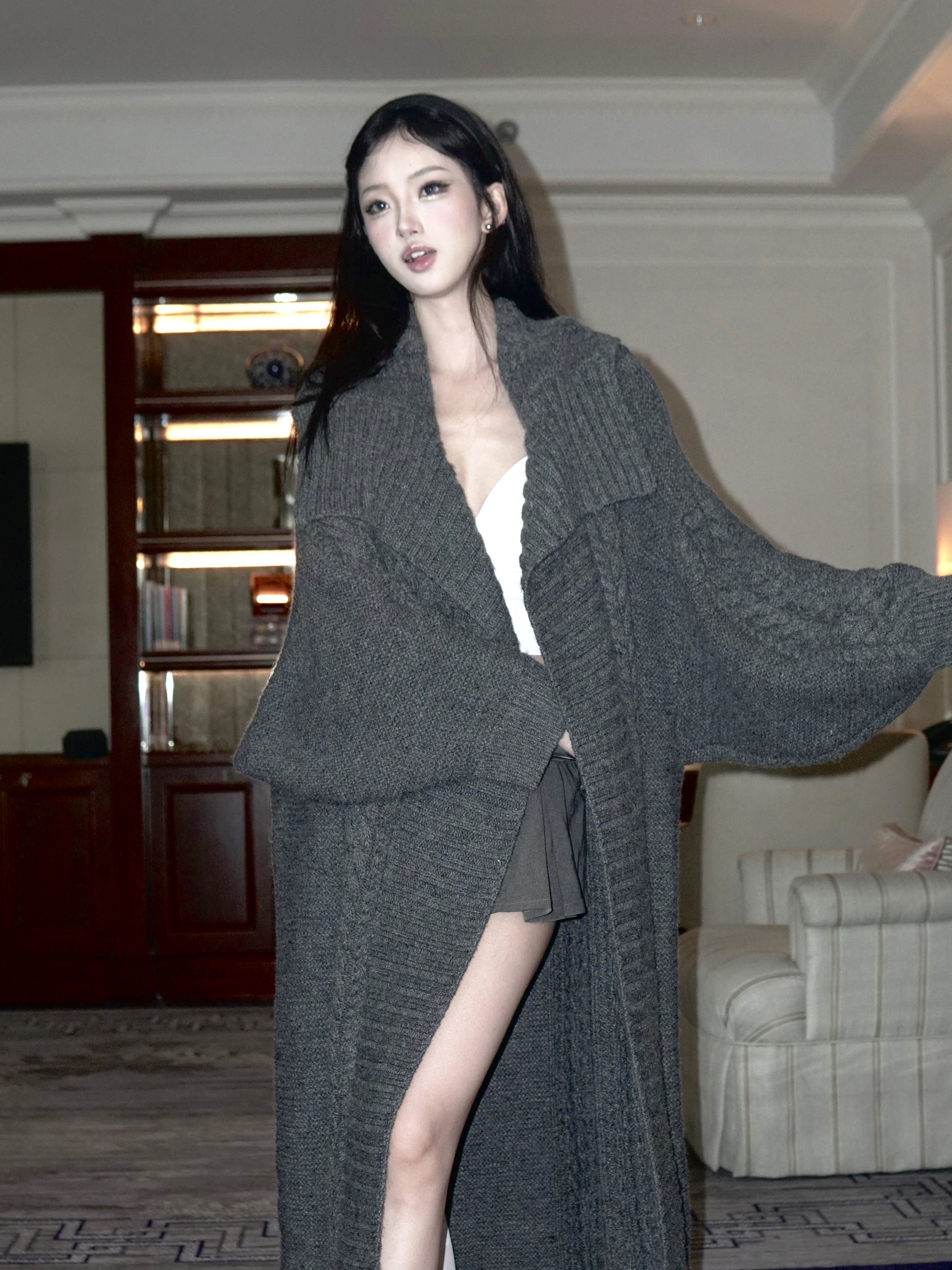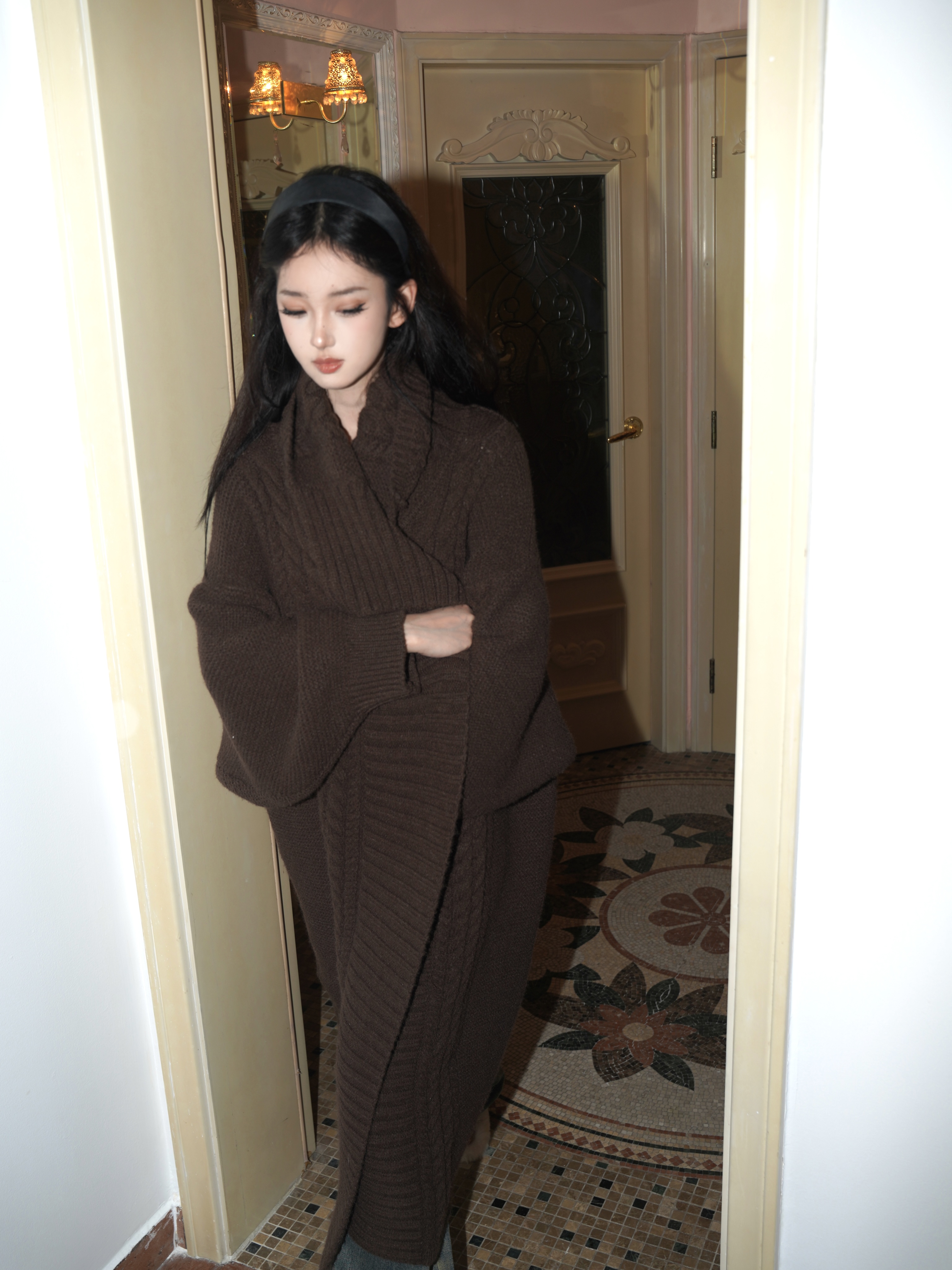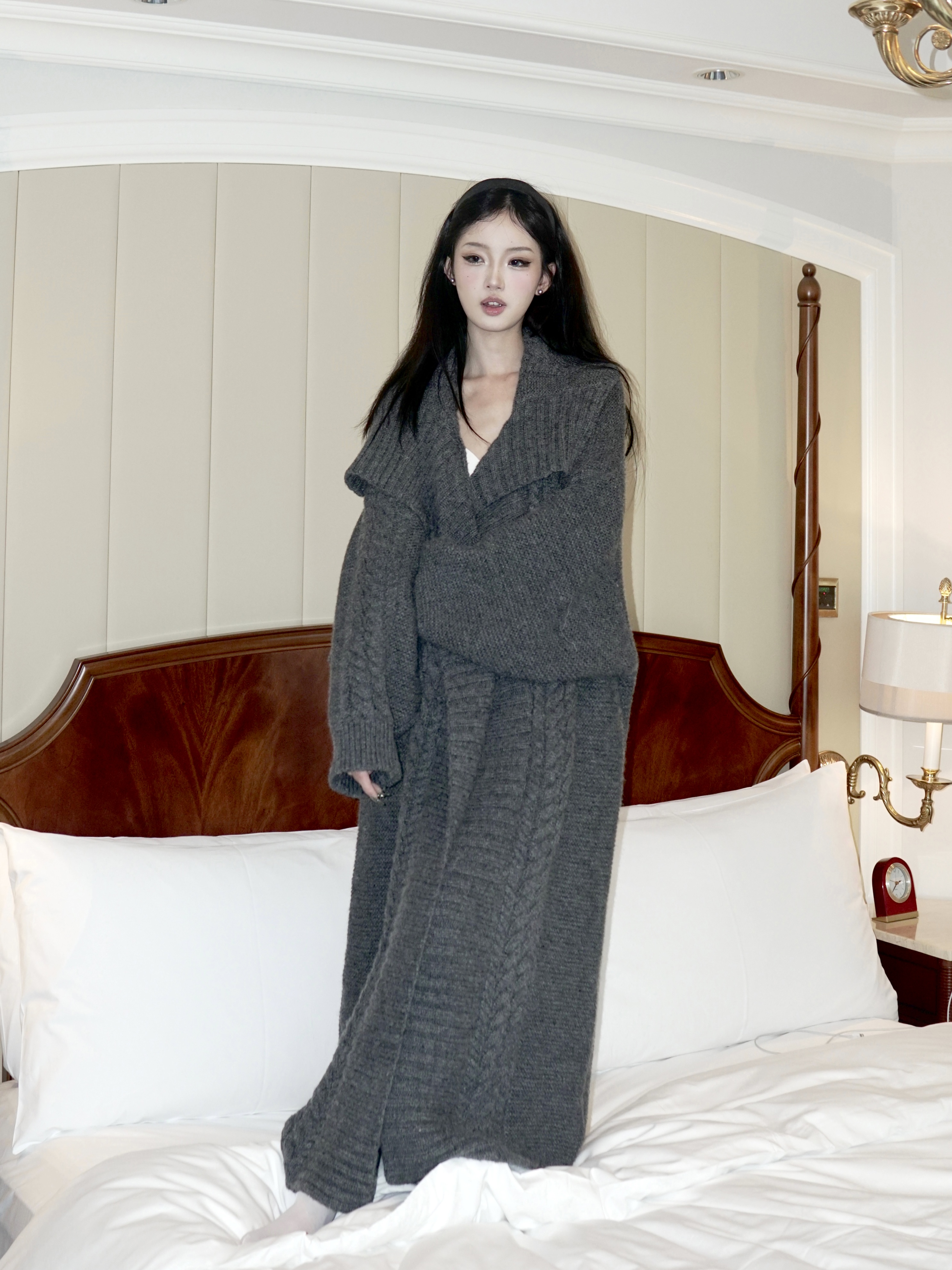 Ruanrui Atmosphere Sensation of Heavy Industry Coarse Twist with Lazy Sensation Temperament Casual Long Sweater Sweatshirt-Taobao