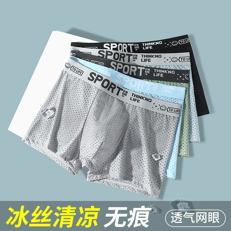 Men's underwear 2023 new ice silk unscratched thin yarn male summer slim summer underwear 4 corners large size flat angle pants-Taobao