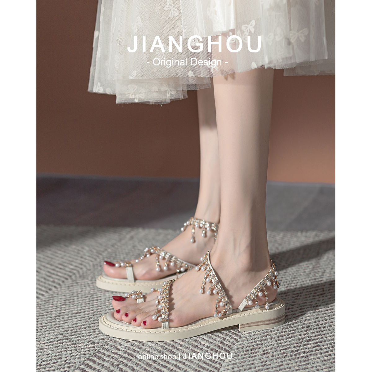Artisan meets female shoes Bohemian feng shui Diamond Jedi Flat-bottomed Cool Shoes Woman Sanya Holiday Seaside Seaside Fairy Shoes Accessories-Taobao