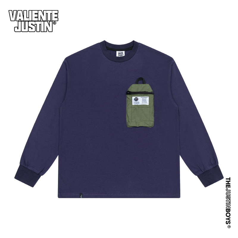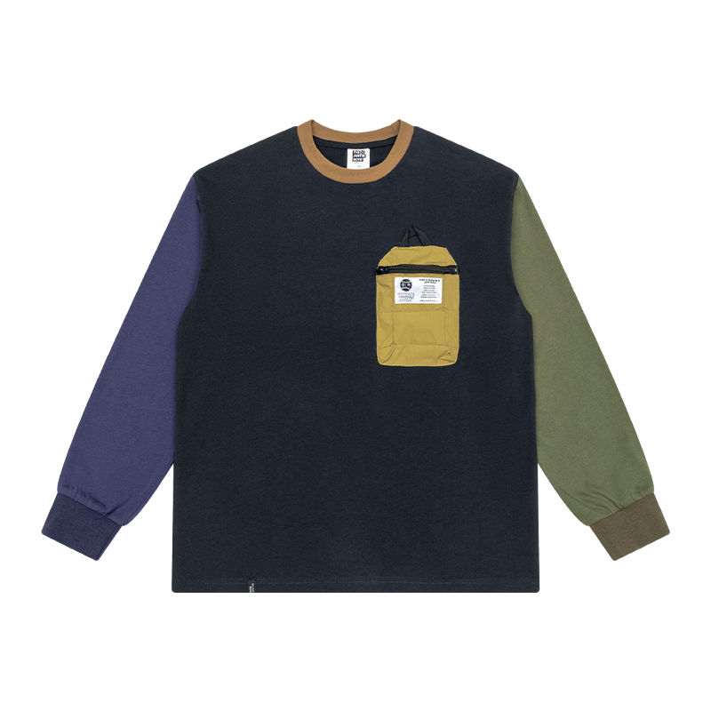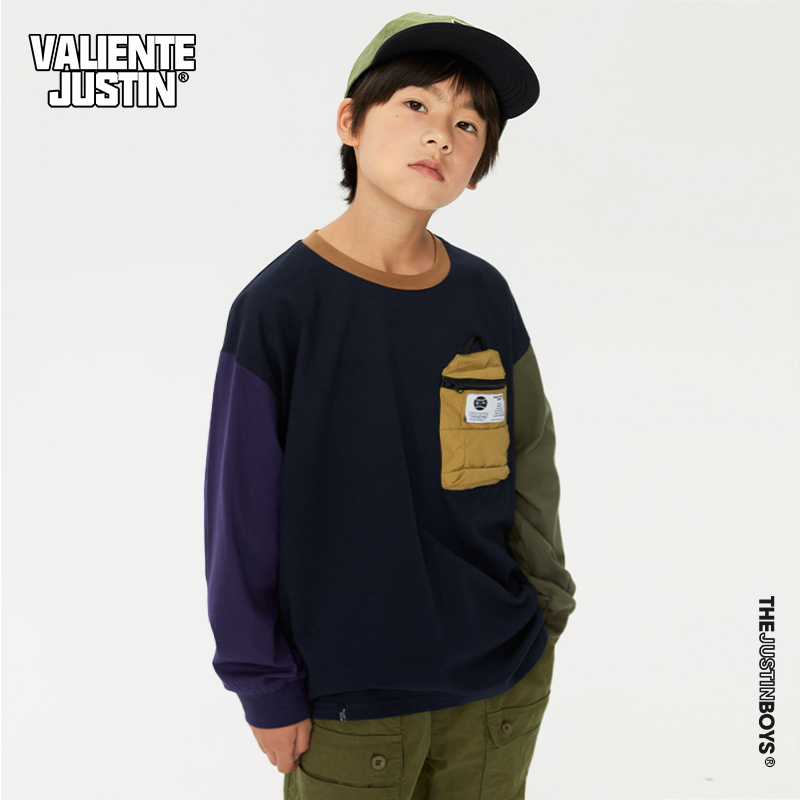 JUSTIN Child clothing children 23 fall Pure cotton Leisure Mountain Department Round collar loose splicing pockets Long sleeves T-shirt Boy-Taobao