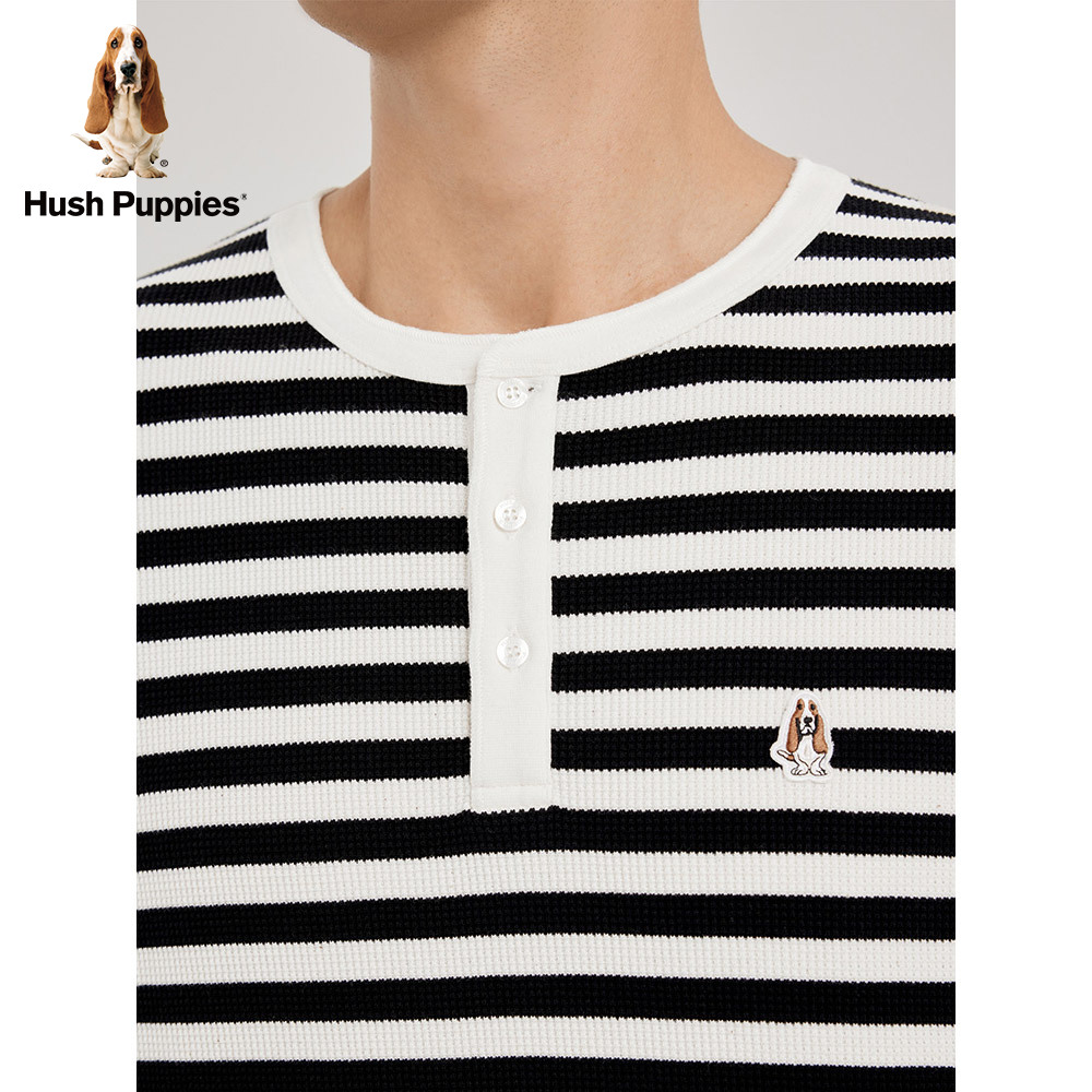 Hush Puppies Leisure Steps Men 2023 Fall loose casual Huffinger Striped Long Sleeve Round T-shirt-Taobao