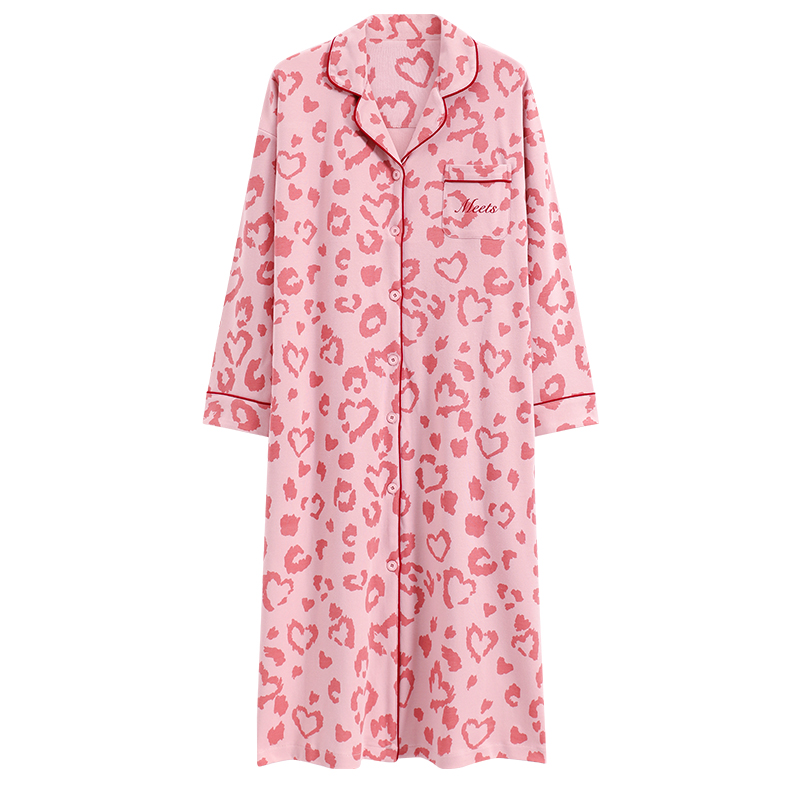 Surfsa with chest cushion sleeping dress lady spring autumn season pure cotton cheerleader Long sleeves casual available in the middle of the house Sleeping Clothes-Taobao