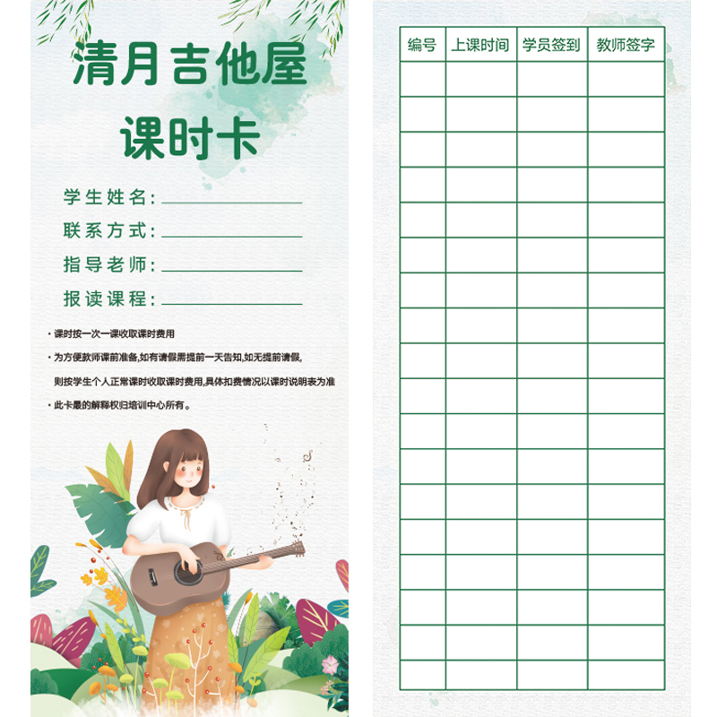 Training institution class time card sign to card registration form yoga record card custom beauty points rewards card custom points card paper making children custom free design minimalist creative printing-Taobao