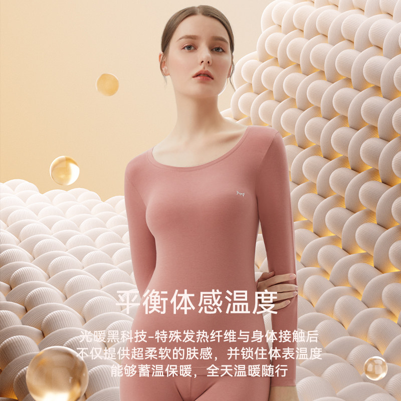 Cat People Warm Underwear Lady No marks Breathable Light Velvet Fever Bottoms Shirts Autumn Winter Autumn Clothes Autumn Pants Women Suit-Taobao