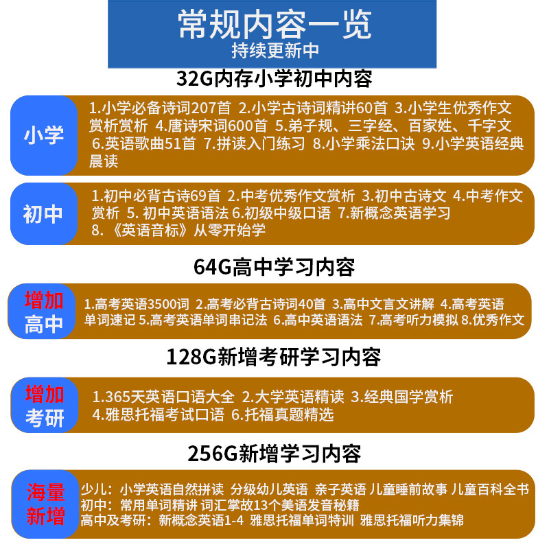 32G Local Genuine Sync Hearing (Primary School Resources) 64G Local Genuine Sync Hearing (High Resource in Little Primary) 128G Local Synchronized Hearing (large amount of resources) 32G