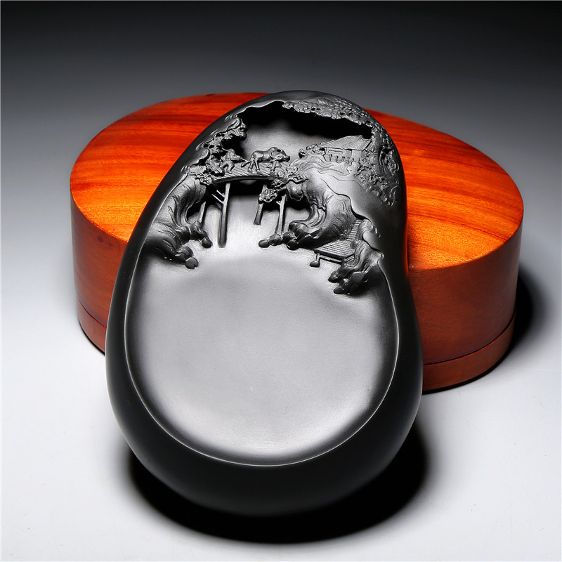National Non-relic Division Handmade Anhui County Longwei Mountain natural original stone Old pit Black Longwei High-end Treasured Collection of Four Treasure Calligraphy Special Ink Stone Slabs for Ink Stone Slabs-Taobao