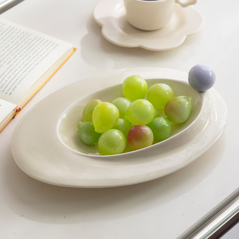 Miko Home Light Lavish Cream Wind Ceramic Fruit Tray Home Living Room Tea Table Advanced Sensation Creative Snacks Dried Fruits-Taobao