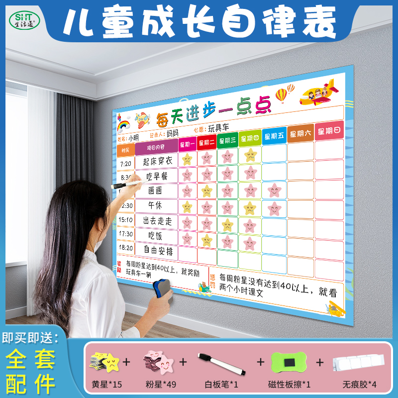 Living Through Children Growth Self-discipline Table Wall Sticker Home Baby Good Habit to develop Reward Record Table Kids Time Management Play Card Schedule Study Self Discipline Theorizer Credits Magnetic Arrangement-Taobao