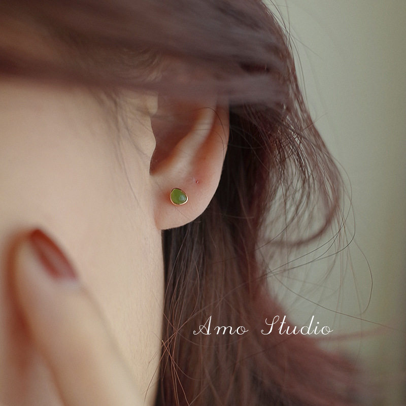 srrmhyn retro green earnail female small crowdsourced design feel small and mini raising earrings high-Taobao