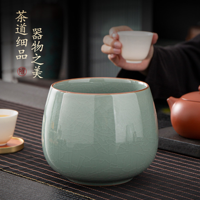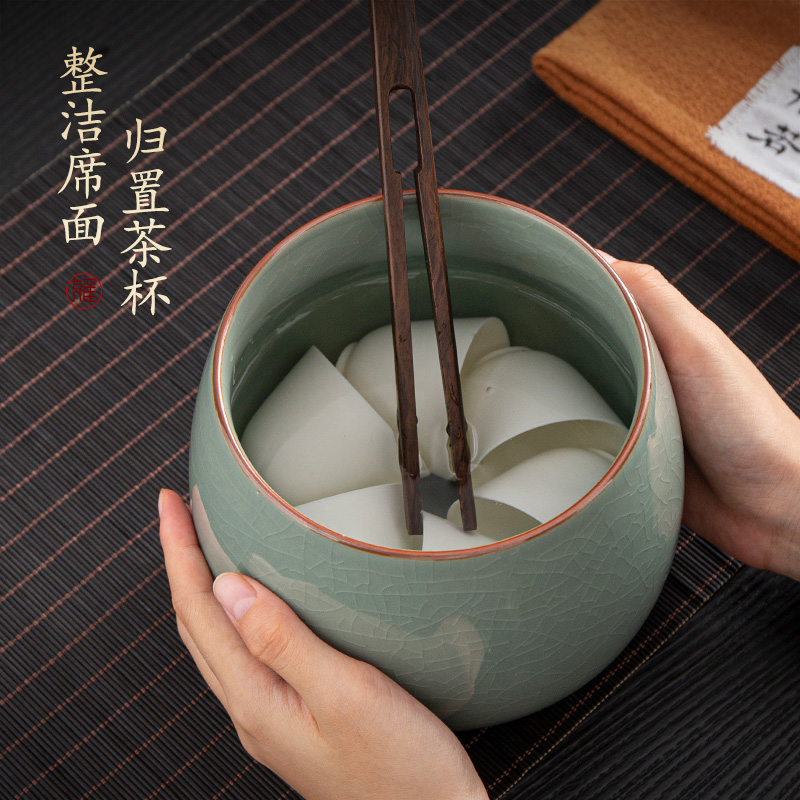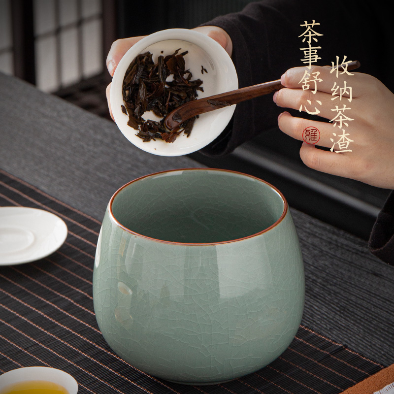 Pottery Fu Qi Gook Kiln Ceramic Tea Wash Tea Residue Cylinder Home Tea Set Tea Road Accessories Tea Table Waste Bin Ash Cylinder-Taobao
